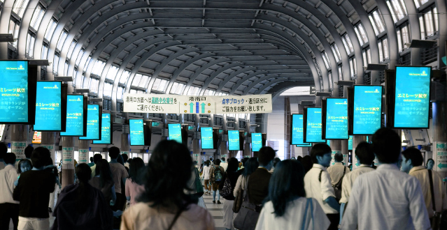 屋外・店頭・公共空間・交通機関・商品棚・オフィス等で表示される情報、広告のうち、紙やポスターではないディスプレイやLED等の「電子表示機器」で発信されるメディアを「デジタルサイネージ」と呼んでいます。