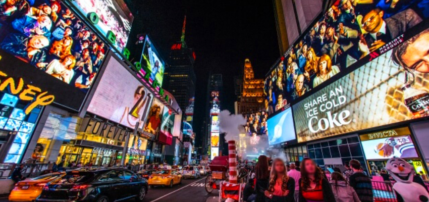 LEDビジョンの光源はLED電球そのもので、デジタルサイネージの光源はガラスやフィルターの後ろにあります。そのためLEDビジョンの方が輝度が高く、屋内外関係なく画面をはっきりと見ることができます。