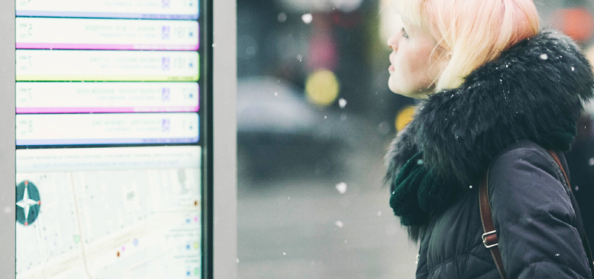 最近はスマートフォンやタブレットが普及していることもあり、タッチパネル式のデジタルサイネージをタッチ操作することに抵抗のない人もたくさんいます。そのため、商業施設や公共施設、観光、交通機関の案内板、イベント告知などで広く導入されています。