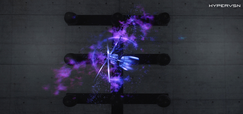 Hypervsnは4本のブレードがクロスし、それぞれのブレード上にはLEDが直線状についています。Hypervsnが扇風機のように回転することでLEDがホログラフィックを映すという仕組みです。特殊なゴーグルやメガネなどを必要とせず、肉眼でも3Dホログラムを見ることができるため、大人数や広い場所での視聴も可能になっています。